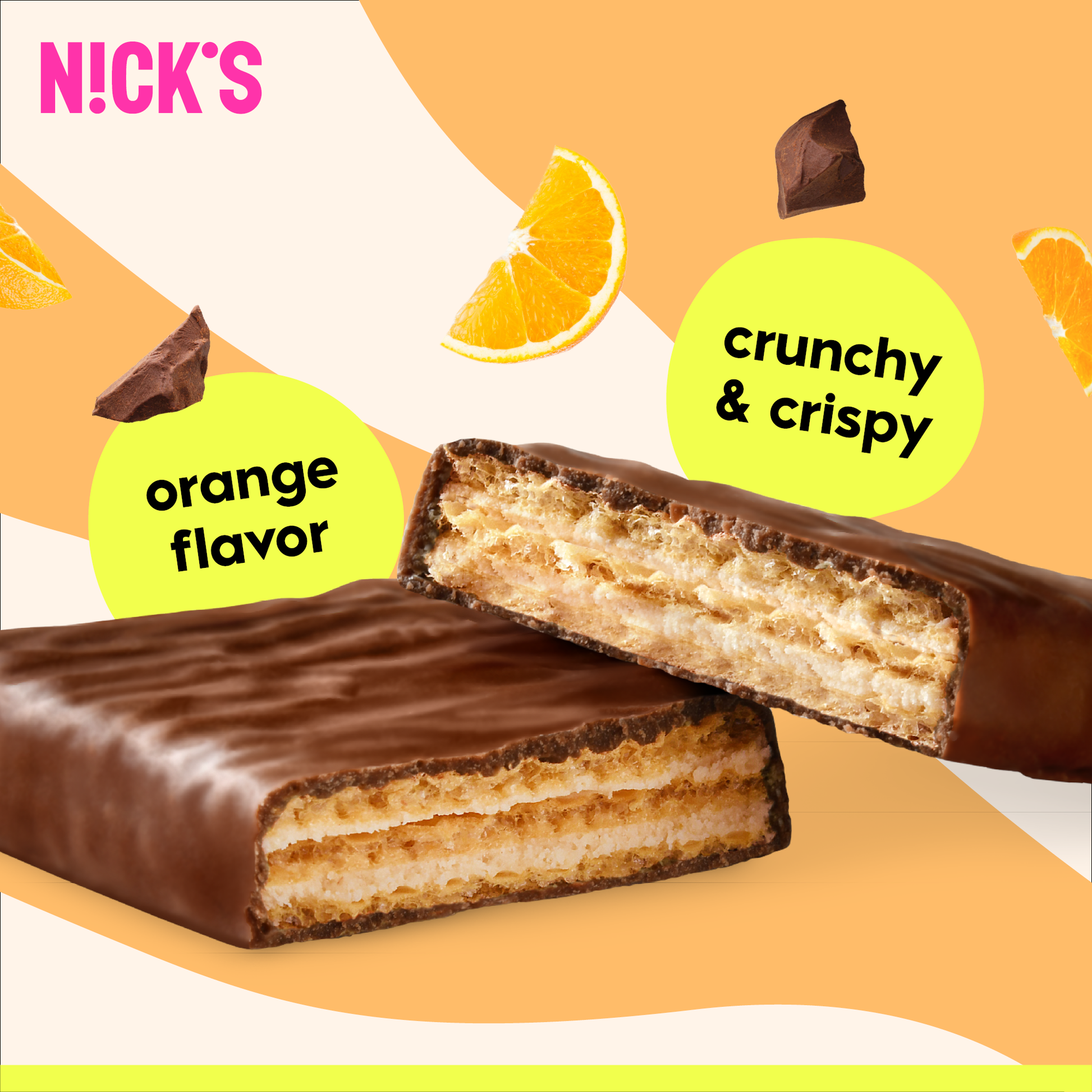 Our Protein wafer orange is a crunchy wafer bar coated in milk chocolate, filled with a soft protein layer with a fresh flavor or orange. With 25% protein, it’s the perfect snack to recharge and fuel your energy.